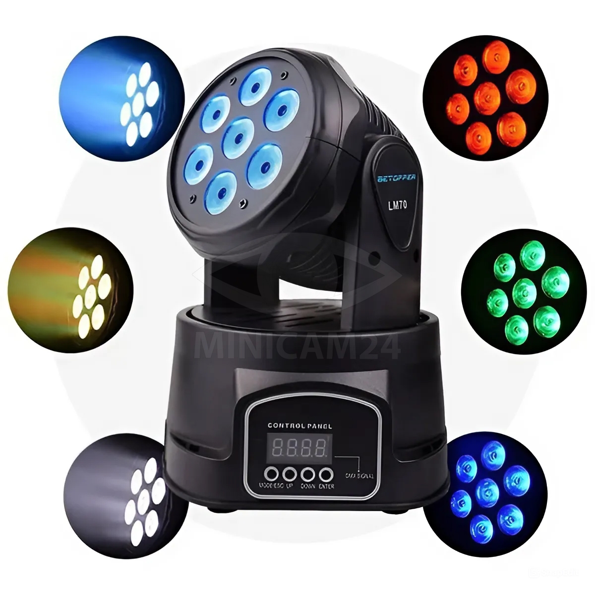 Рабочее напряжение в диапазоне 95-245 В переменного тока и частота 50/60 Гц делают этот проектор совместимым с большинством электрических сетей по всему миру. С номинальной мощностью 35 Вт и параметрами лампы, включающими 7 шт. по 4 Вт RGBW светодиодов, StarDisco LM70S обеспечивает насыщенные и яркие световые эффекты.